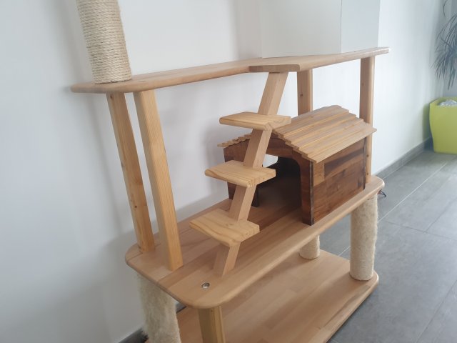 Panneaux en hêtre lamellé collé, grattoirs avec corde en sisal.