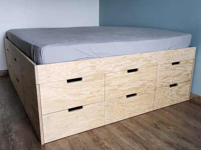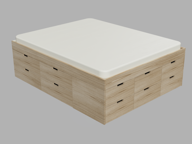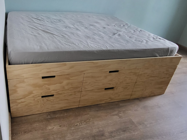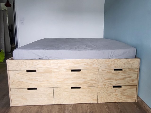 Lit avec matelas 160 x 200 cm, hauteur lit 60 cm.