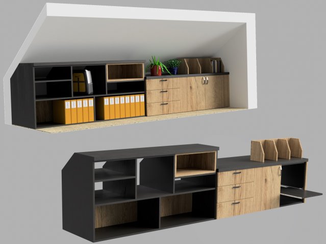 Bibliothèque en soupente Rendu 3D pour validation client.