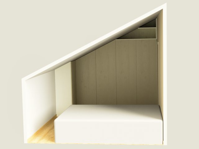 L. 2,85 m / H. 2,73 m / P. 57 cm (caisson avec tiroirs à l’Anglaise: L. 0,72 m / H. 1,60 m / P. 45 cm).