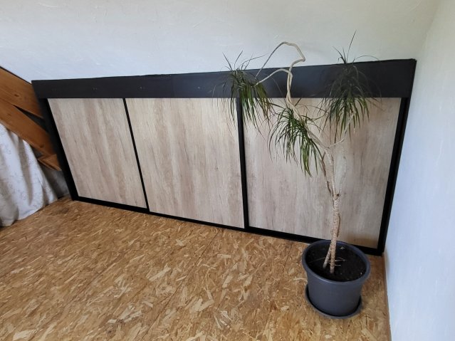 Structure en mélaminé noir. Longueur totale 3,30m.